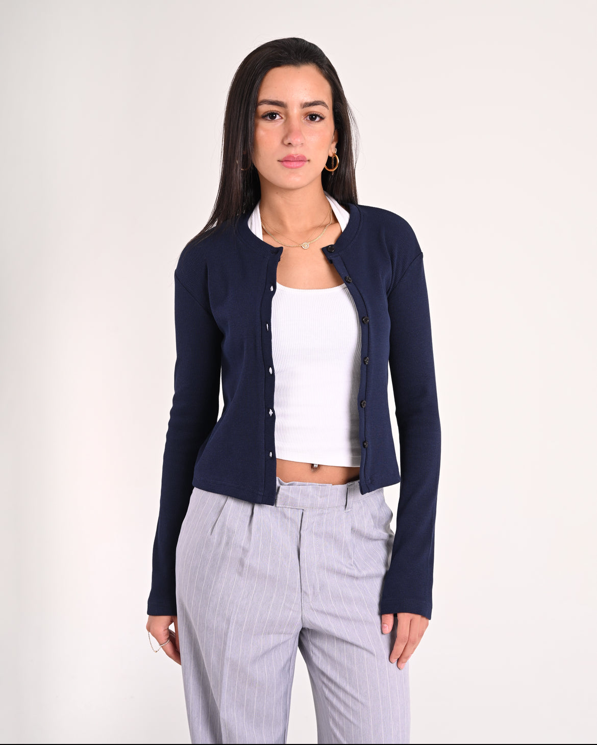Navy Basic Ribbed Cardigan